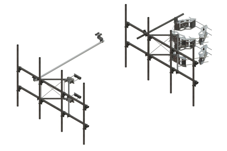 G21 Series Monopole & Tower Sector Frames feature a lighter weight frame combined with the sturdy G2 Series base design for an economical option when heavy duty load conditions are not required. Offerings are limited to smaller 10ft and 12ft face widths and feature a single tie-back. The G21 Family includes: