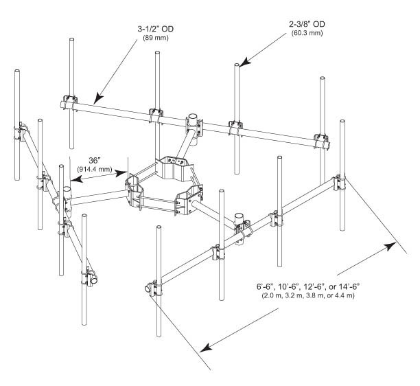 Monopole Co-location T-Frame Kit, 10 in to 30 in OD, 10 ft face, includes pipe