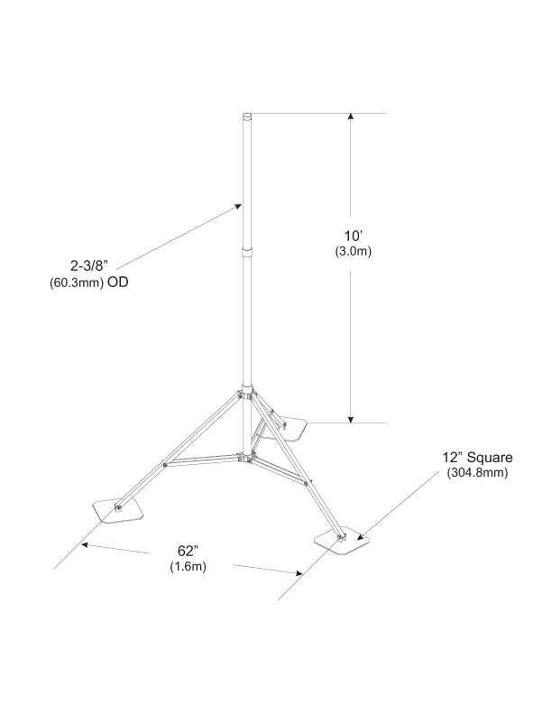 Aluminum Tripod Mount, 2-3/8 in OD x 10 ft pipe