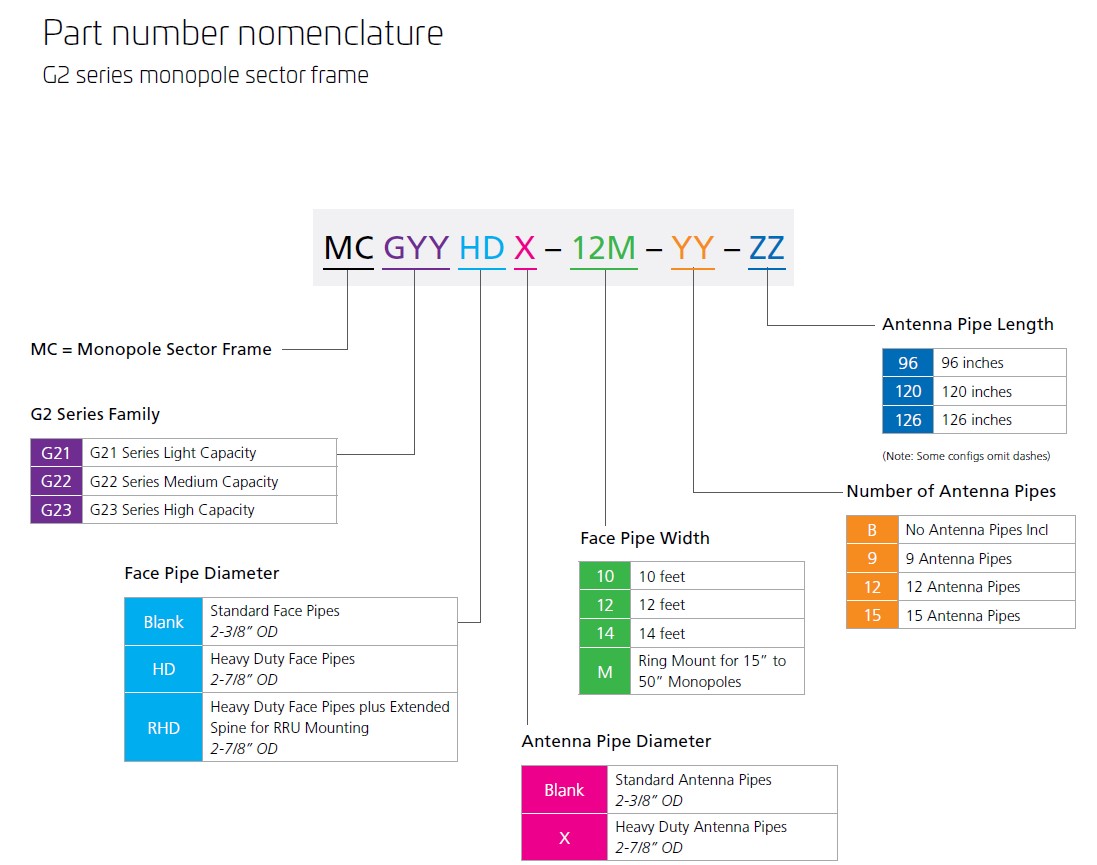 • MCG22HD: Monopole Sector Frames with 2-7/8” OD Face Pipes & 2-3/8” OD Antenna Pipes