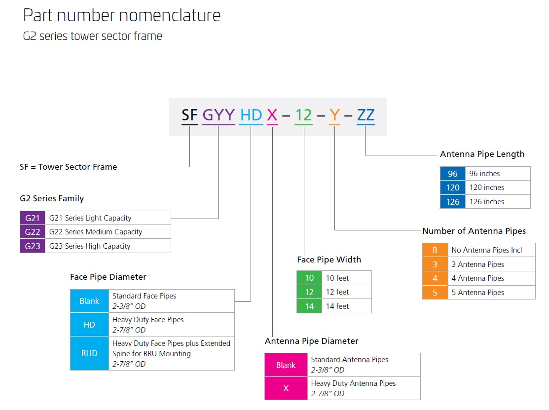 • SFG22HD: Tower Sector Frames with 2-7/8” OD Face Pipes & 2-3/8” OD Antenna Pipes