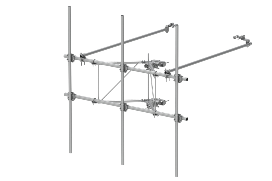| Included | Frame | Pipe mounts | Plain end pipes (3) | Stiff arms (2) | Tower attachment |