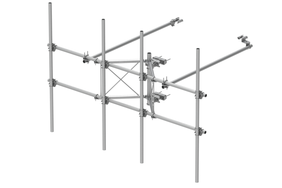 | Included | Frame | Pipe mounts | Plain end pipes (4) | Stiff arms (2) | Tower attachment |